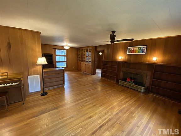 Multiple Offers-Deadline Offers 12/14 12 noon-Bring Highest & Best. Durable Cypress Siding 1956 custom spacious Mid-century modern single fl ranch set way back off road almost 1 acre. 3 min drive to Duke West Campus. Hardwood floors, Large 20' 10" x 13' Living/Family Room built-in bookcases gas log fireplace, Sunroom, Dining w/ Built-In Cabinets glass tops, spacious closets, separate laundry room, wide 36" doorways HVAC 4 yr, Ductwork 1 yr, Water Heater 3 yr easy on/off 147, 3 Min Drive Duke U Hospital