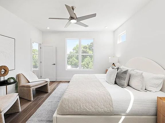 Every floor has luxury vinyl plank (no carpet to worry about). Nine foot ceilings on the lower and upper levels, 10 foot ceilings on the main level. Recessed LED lighting throughout. A dry bar for entertaining. Every bathroom has quartz countertops. There's even a guest/visitor parking area for when people come over.