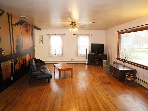 *Buyer financing fell through! Ready for a quick close!* Spacious and hard to find 4 BEDROOM RANCH on a quiet street near the center of town. Walking distance to library, downtown & multiple parks. HARDWOOD floors t/o living room and all bedrooms. Large Eat-in Kitchen with breakfast bar and pantry closet. All 4 bedrooms are good sized with lots of closet space. Full unfinished basement has two storage rooms with shelving and plumbing for a full bath. Fully FENCED YARD has patio, outdoor shed and 240 electric for RV or Pool. Oversized 2.5 Car Garage has back storage room and attached workroom for a home business set up or perfect man cave with a kitchenette and plumbing for a full bath. NEWER: Roof-2009,Windows & Leafguard Gutters-2011, AC-2010. Come see today!