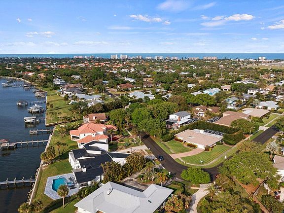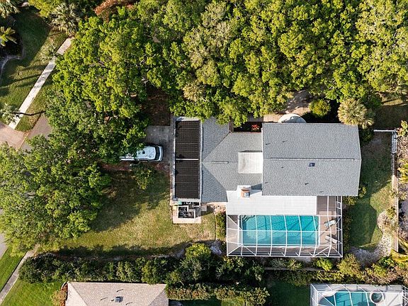 Majestic oak trees frame river views and welcome you to this Georgian revival tucked away on a quiet street in the heart of Indialantic. Ground floor features formal living and dining rooms, chef's kitchen, large bedroom with family room or den and a pool bathroom, laundry room and tons of storage. Screened in pool with spacious lanai, tropical landscaping adding privacy to the almost half acre corner lot. Upstairs you'll find the primary bedroom with 2 walk in closets and attached bathroom. 2 huge guest rooms with a shared bathroom. Large garage has an attached workshop/storage area with wide driveway. Front of the home has a circular driveway for extra parking. Sidewalks for safe transit to the parks, schools, shops and restaurants close by-only 2 blocks to some of Florida's most beautiful beaches.