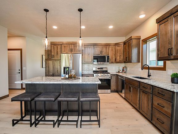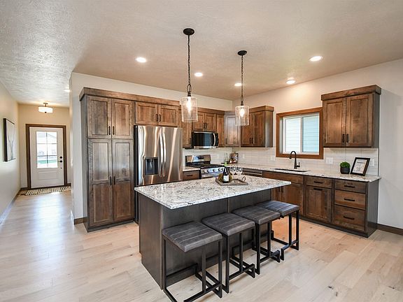This stunning new construction ranch-style home combines modern convenience with timeless design. With only 1 step to enter & 3’0” doors, this home offers easy accessibility. Open concept plan boasting 9-foot ceilings on the main, while the unfinished lower-level features 8-foot ceilings & offers plenty of potential for future expansion. Beautiful wood floors span the main floor living areas. Gorgeous kitchen complete with granite countertops, stylish 2-tone cabinetry & stainless-steel appliances & tile backsplash. The primary suite is your private retreat, featuring heated floors in the bathroom, dual vanities, & a luxurious tile shower. Enjoy the convenience of main floor laundry & plenty of storage throughout. Outside, you’ll appreciate the covered back deck & low-maintenance lifestyle with yard care, snow removal & road maintenance included. The yard is watered with a well system, saving on utility costs. This home offers ample space, style & attention to detail at every turn.