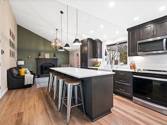 - Features: Dishwasher, Disposal, Gas Appliances, Island, Microwave, Free Standing Range, Free Standing Refrigerator, Quartz, Vaulted Ceiling, Vinyl Floor