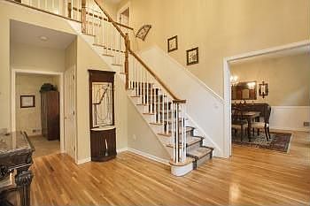 A gracious floor plan beckons one in upon entering the two story foyer. Formal living, and dining rooms with classic details of hardwood floors, double French doors, chair rail and custom windows are perfect for special occasions. The gourmet kitchen is appointed with oak cabinetry, a center island with granite counter and seating, custom tile backsplash and counters and stainless steel appliances. Glass sliding doors in the breakfast area provide for entry to the deck. The family room enjoys a gas fireplace to relax by and access to the deck for ease of entertaining. A powder room, laundry room, office and access to the 2-car garage with loft storage complete the main level.The second floor offers the master suite with his and her walk-in closets, sitting/leisure room and sumptuous master bath with sunken tub. Three additional spacious bedrooms and a full bath complete this level.The finished lower level provides for bonus living space with a recreation room, game and exercise rooms and separate storage room.The home site with mature trees & paver walkways offer a country feeling yet is convenient to major roadways and shopping. True pride of ownership is evident throughout this exquisite home.