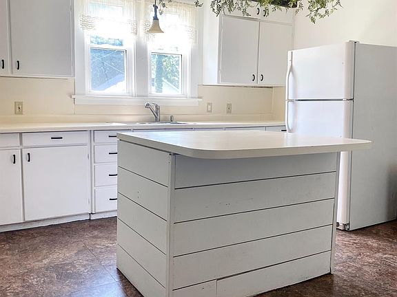 LARGE YARD! 3-5 BEDROOMS! If you are looking forpotential with room togrow, this is YOUR HOUSE! Tall ceilings, beautiful wood,and lots ofcharacter.This home has a grandliving room, formal dining room, a main floor bedroom, and a kitchen with ALL thestorage. Upstairs will house up to 4 more bedrooms and has akitchenette area with a finished laundry room. Adorable covered front porch, newer roof,windows and boiler are some added extras. Home sits on a HUGEdouble lot that is completely secured and private with whitevinyl fencing. The large garage in the back and the basement will serve as great storage space.