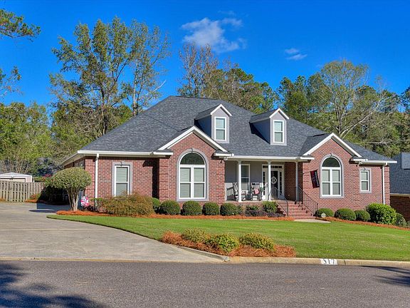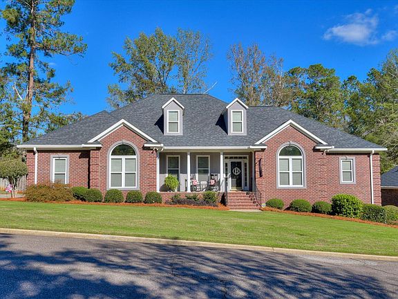 BRICK BEAUTY in Oak Creek! North Augusta is such a lovely place and is home to this lovely, all brick, three bedroom, two and a half bath home! Spacious, open concept floor plan featuring gourmet kitchen with plenty of counter space, cabinetry, gas cooktop, breakfast area, sunroom, family room, double sided gas fireplace, formal dining room, formal living/office space and a split bedroom plan. The large owner's suite showcases a tray ceiling, large en-suite with separate shower and soaking tub, dual vanities, and 2 closets! The other bedrooms share a full bath. This home has so much storage room! From the multiple walk-in closets, walk up attic space and oversized garage to the separate outbuilding and under house storage as well! The beautiful saltwater pool has been covered for the season by Pete Alewine but the backyard oasis is something to speak about! Beautifully landscaped grounds, windows 1 year old, roof 5 years old, lower end AC is 2 years old, permanent gas line for grill. This home is loaded with all you would want in a home. Come take a look and fall in love with this stunning residence!