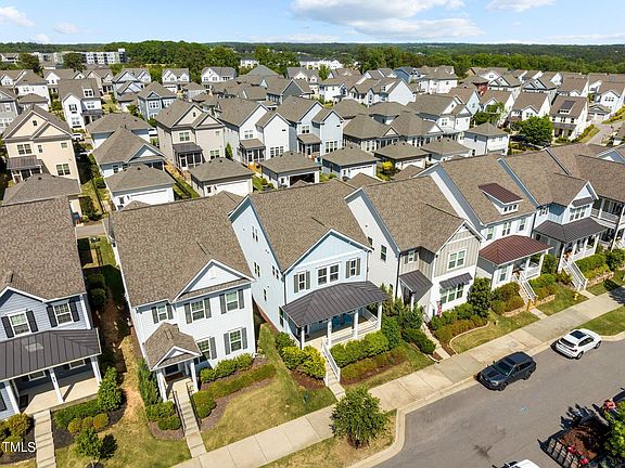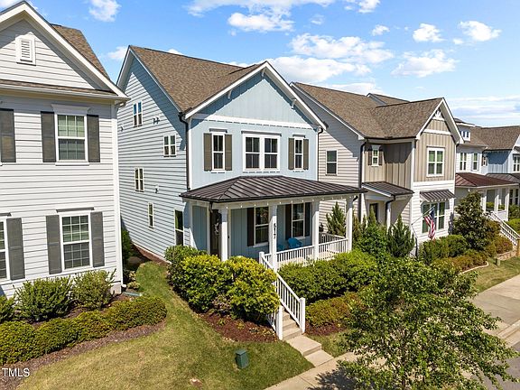 This beautiful & immaculately maintained home w/open floor plan & rocking chair front porch is located in the heart of Wake Forest near shopping, dining & downtown. The wood beamed ceiling & white masonry fireplace add contemporary charm to the spacious family rm while flowing perfectly into the dining rm & kitchen. Your household chef will love the huge center island, gas cooktop, stainless appliances & modern tile backsplash. Upstairs you will find the luxurious owners' suite featuring walk-in closet & oversized shower. 2 large secondary br's, full bath & laundry rm round out the 2nd fl. The 3rd fl loft makes a great home office or media room. Convenient to several parks, 15 acre lake, community pool & more!