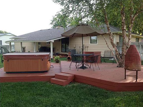 Nice 3 bedroom, 3 bath Ranch home on beautifully landscaped-treed lot on East side of Rose Hill. Main floor features include 2 large bedrooms, two baths, Living room with stone fireplace, large kitchen-dining area with access to the outside living area that is awesome! You'll love the covered deck that extends out to a second deck complete with hot tub. The back yard is enormous and the owner takes pride in the lush lawn and landscaping in both the front and back of this home. There is a well and sprinkler system and fully fenced back yard for privacy. Basement has been updated with knockdown ceilings, fresh paint, large bedroom and full bath. There is a second wood burning fireplace, making a cozy and spacious second living area. This is an extra nice home and ready for your private showing. Rose Hill is a short drive to East Wichita, McConnell AFB, and Spirit. You're sure to love the "Small Town" living! Call today or you may be too late!