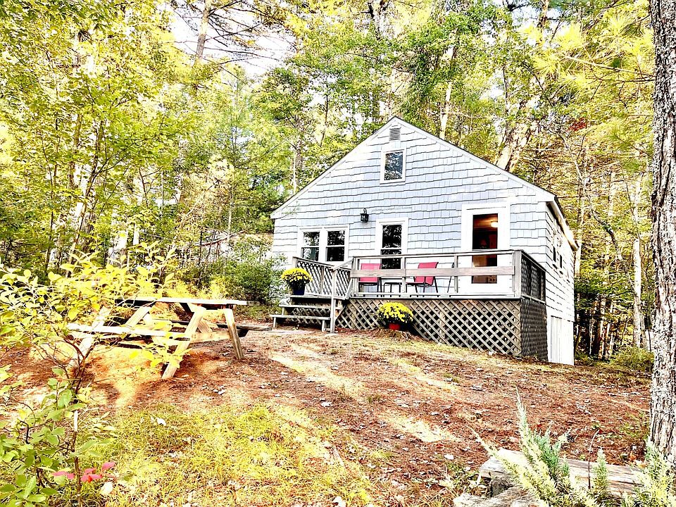 Picturesque Cottage located on 100 feet of waterfront. Just steps to the sandy beach with a perfect spot for a dock (previously dock existed). A tranquil location with lovely views of the lake from the deck and interior. Pequawket Lake offers swimming, kayaking, boating, and is stocked with brown & brook trout for the avid fisherman. This well-maintained quintessential cottage is located in a private setting with plenty of area for outdoor fun. The open concept kitchen and living room is a wonderful gathering place for family. Knotty pine boards throughout and built-ins create a warm cozy feeling. The loft offers approximately 200 SF area for additional sleeping. Easy access and plenty of parking. An ideal place to make family memories!