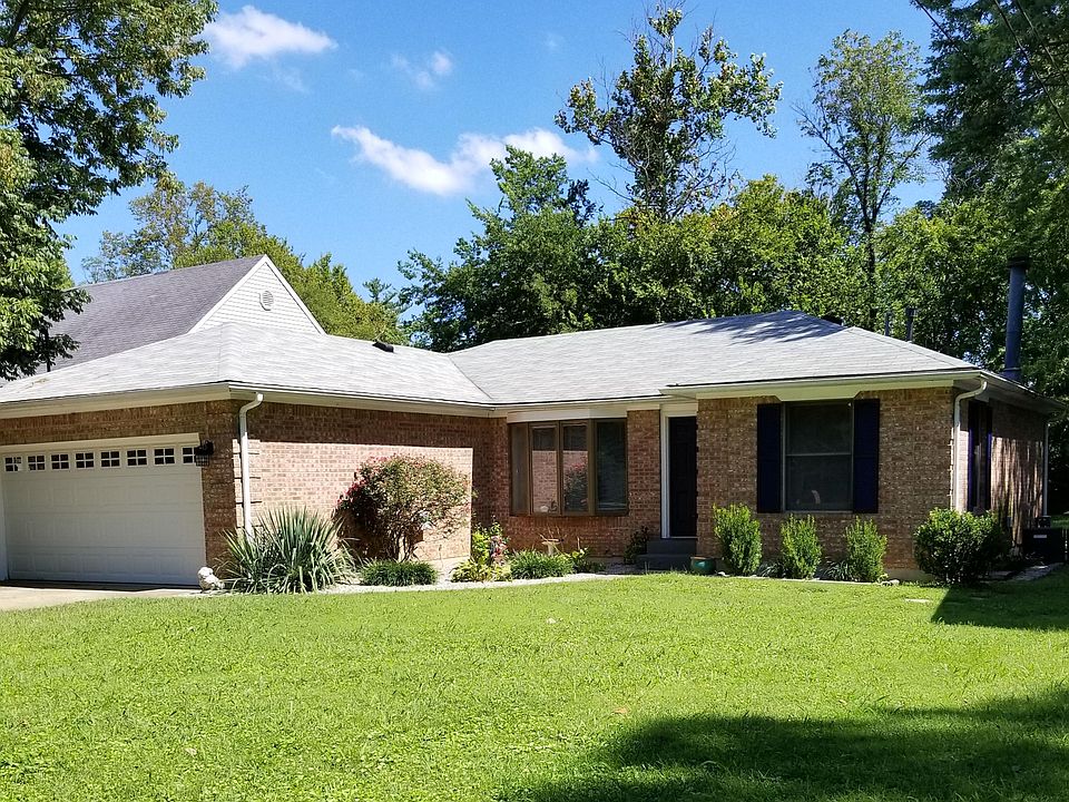 Great open brick ranch. Look at the pictures. Alot of updates. New wood floors, carpet, stainless appliances, cabinets, granite, tile, plumbing and electrical fixtures. There is a fireplace with a blower in the great room. Sunroom looking over nice back yard with fencing on both sides with trees across the back for privacy and a storage shed at left rear. An oversized 2 car garage attached with a double wide driveway. Also has a floored attic with pull down steps. there are a lot of windows at rear of home for view. Very private in a subdivision with sidewalks and on a dead end street. This homes has been remodeled very nicely and is 4 blocks from Shelbyville Rd. in Middletown. You can move right into this home. There is a patio with a fire pit out back. Ready to move in.