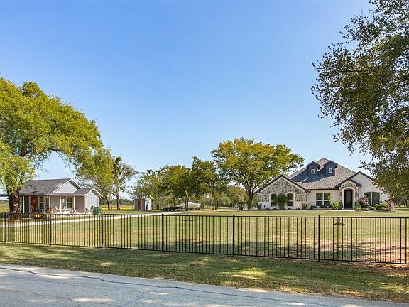 Multi-generational living estate on acreage minutes from downtown Mansfield! Main home is 1 story with 3 bedroom, bonus room, gorgeous open floorplan, split bedrooms, formal living and dining, corner stone fireplace, natural light, stunning design. Flex room could be a study, bedroom, used now as laundry and workout room. Adorable guest house was original home on land, updated with charming living, dining, kitchen combined, one bedroom, bath, and laundry. Lovely covered porch. Park-like back pasture features a pond and beautiful shade trees. Other areas house a chicken coop and outbuildings. Property has a well, but not used currently. Parking for your RV, boat, trailers. And bring your horses!
