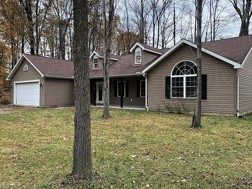 Welcome to one floor living. This open floor plan has large kitchen with oak cabinets, FP in the LR, MB with walk-in closet and another BR with cathedral ceilings all with two additional lots and wooded back yard.
