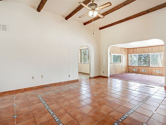 Welcome to 517 Rover Blvd, a rare gem waiting for your personal touch. This expansive home offers a unique combination of charm and potential, set on a sprawling lot that backs directly to open space and the stunning Rio Grande Canyon. With its distinctive Southwestern touches and ample space, this property is a blank canvas ready for transformation. Step into the primary living room and be greeted by impressive viga beam ceilings and Southwestern-inspired details, creating a warm and inviting atmosphere. The family room features beautiful red brick flooring and a classic wood-burning stove. Four well-sized bedrooms provide plenty of room for family or guests. The kitchen features an eat-in nook and direct access to the large dining room with a built-in credenza, ideal for entertaining. A designated laundry room and bonus room provide ample space for storage, pantry needs, or hobbies. Central air conditioning keeps the home comfortable in the warm months. The property sits on a massive lot offering privacy and ample space for outdoor activities, gardening, or future expansion. This home is just a short drive to Rover Park, both elementary schools, the grocery store, and hiking trails. The property is being sold as-is, allowing you to embrace the opportunity to renovate and customize to your liking while securing great value. Schedule your private showing today.
