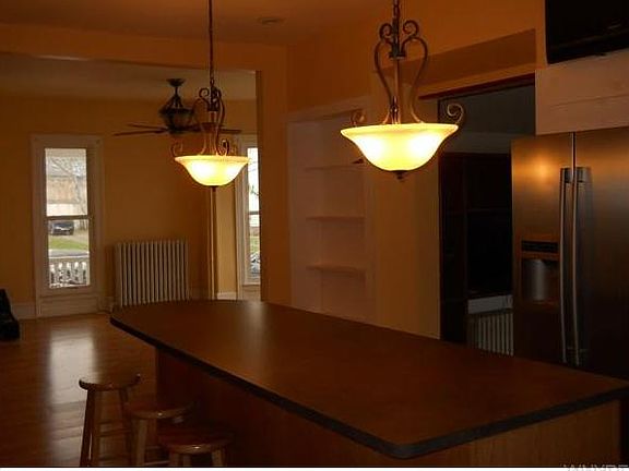 Fabulous move-in colonial. Open floor plan boasts a beautiful kitchen with plenty of storage and a huge island. Opens into the dining room with awesome bay window. Large step down living room and first floor laundry. First floor master bedroom with attached den or office. Two large bedrooms with full bath on 2nd floor. All newer windows and flooring. 2 car detached garage. Great front porch to make memories on. Taxes do not reflect any tax discounts.