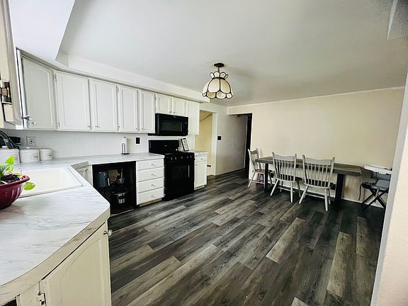 This home is deceiving from outside. It has 2300 finished square feet with 3 levels and 4 bedrooms and 2 bathrooms. On the main floor you will find one bedroom, the main bathroom with double sinks, the Kitchen, an oversized living room with gas stove and big picture windows. The upper level features an oversized bedroom that could be used as a master bedroom or a family room. In the basement you will find 2 good sized bedrooms with egress windows, laundry, and a 3/4 bathroom with a walk in tiled shower. You will find many extras within these walls. This home has an abundant amount of built in storage, it is located on a corner lot, new furnace installed in 2022, metal siding and vinyl windows, 9 x 18 storage shed, fenced yard, oversized concrete patio perfect for entertaining, and a 2 plus metal carport tall enough to house a camper. Home is within a few minutes of shopping and food.