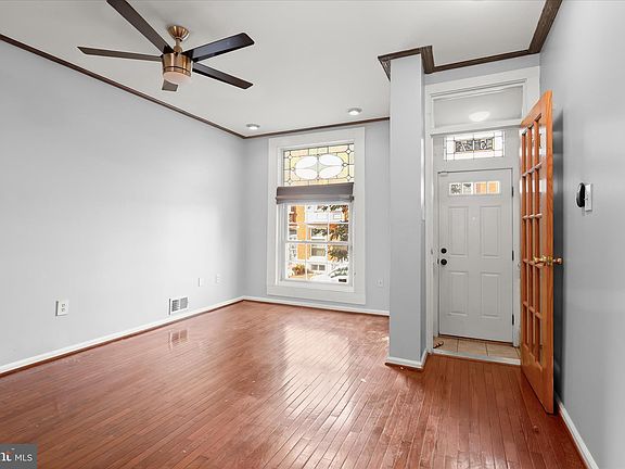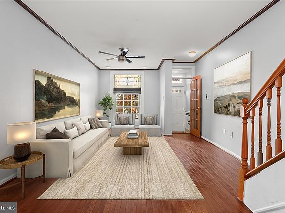Discover the charm of this 2-bedroom, 3-bath home nestled in the heart of Greektown, a neighborhood rich in history and renewed with a modern vibe. The inviting ceramic tile vestibule leads into an open-concept living and dining area, highlighted by a beautiful stained-glass transom window, warm hardwood floors, and a soft, neutral color palette. The well-designed kitchen offers stainless steel appliances, including a gas range, recessed lighting, and a ceiling fan, with direct access to the private courtyard patio, an ideal space for outdoor dining, container gardening, or a pet-friendly retreat. Upstairs, the spacious primary suite is filled with natural light from the bow window and features two closets and an updated en suite bath with both a soaking tub and a walk-in shower. The second bedroom, a full bath with a tub-shower combination, and plush carpeting complete this level. The finished lower level expands the living area with a versatile recreation room, a space easily adaptable as a third bedroom if desired, with wood-inspired laminate flooring, a full bath, and a laundry room with a full-size washer and dryer. With its proximity to Johns Hopkins Bayview, Brewers Hill, Canton, and major routes I-895 and I-95, this home offers a wonderful blend of convenience, community, and city living. Note: Select interior photos have been virtually staged.