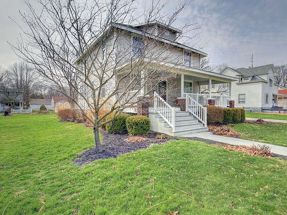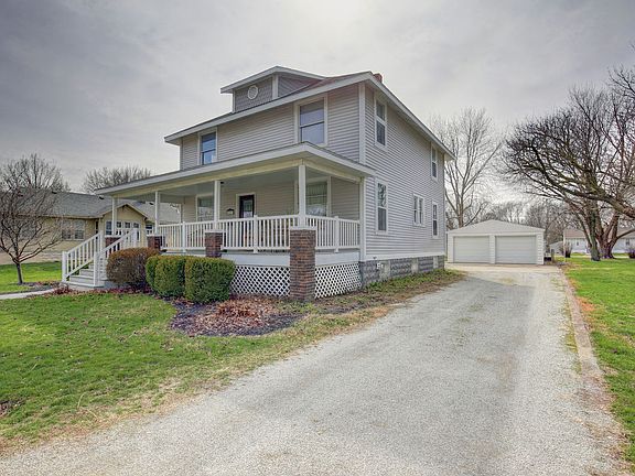 Located in the "Heart of the Illinois Amish Country" this traditional four square style home built in 1913 is sitting on a double lot. Extremely well cared for and ready for you to call home! Welcomed by the beautiful covered front porch, you will fall in love with all the charm and character. Spacious living room and dining area with 9' ceilings has original picture railing and woodwork. Kitchen was redesigned and remodeled, completed in 1998. Bedroom on the first floor is also useful as an office. Three bedrooms upstairs, including full master bathroom. Unfinished basement great for storage. New roof in 2003 and siding 2004. Furnace and A/C replaced in 2001. Other updates include blown in cellulose insulation, retro-fitted double pane windows, landscaping, newly painted interior and refinished upstairs hardwood floors. Detached two-car garage w/ double doors with new roof 2018. Extra concrete on the backside of the house, between the house and garage for additional parking. A must see Home, call today for your personal showing!