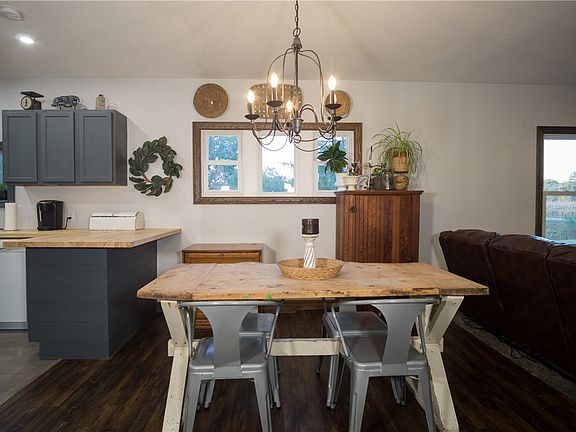 Looking for that perfect hobby farm? Here's your opportunity! This beautifully remodeled and modernized 3+ bedroom, 1 bath, two-story home sits on 5+ scenic acres and is ready for your rural lifestyle. Enjoy a 24x14 heated workshop w/newly added kitchenette w/water, a 34x64 pole shed w/electricity, a barn w/metal roof ('19), two silos, fenced pasture, garden area, and a 10x10 garden shed - everything you need for your hobby farm dreams! Inside, the open-concept kitchen features butcher block countertops, adjoining dining area, and cozy living room. The main level also offers two bedrooms, a spacious full bath w/double sinks, a 20x7 mudroom/back porch, and a welcoming 20x7 front porch. Upstairs includes additional bedroom(s) - one currently a walk-through that could serve as an office or flex space. The finished lower level provides a family room, laundry, and storage. Updates include new electrical and CAT 5 wiring, new water heater ('24), new septic pump (10/24), and insulated 2x6 exterior walls in the shop. A 16x20 carport and separate 20x24 cement pad complete the property. Don't miss this chance to own your own country retreat with all the right improvements already in place!