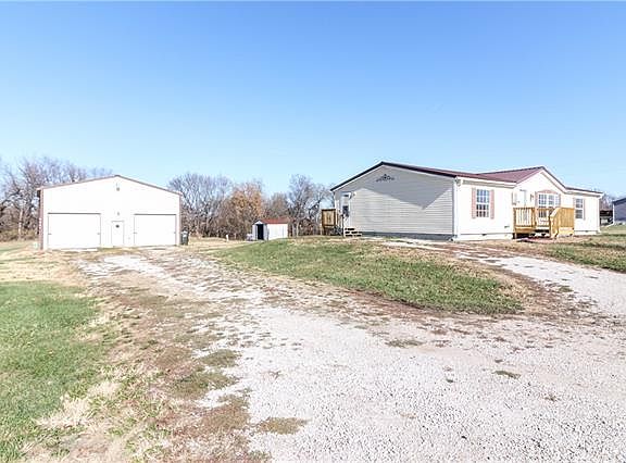 Affordable country living can be yours! The location is ideal between Warrensburg and Knob Noster, only 10 minutes to Whiteman AFB. This manufactured home has been refreshed with new paint throughout, new carpet, and new stainless-steel fridge and stove/range that stay with the home; new AC unit last year! The Kitchen is workable with lots of cabinetry and a center island. The Dining Room has a patio door to walk out to the deck overlooking the large, partially fenced back yard. There are 3 nice-sized bedrooms and 2 full Bathrooms with new toilets. The metal roof is approximately 4 years old. Seller is offering a $3,000 flooring allowance with a reasonable offer! Needing boat/RV storage or a large workshop? The 30 X 30 detached garage has 2 tall roll-up doors, concrete floors and electricity run to it. Make this your new home just in time for the holidays or New Year!