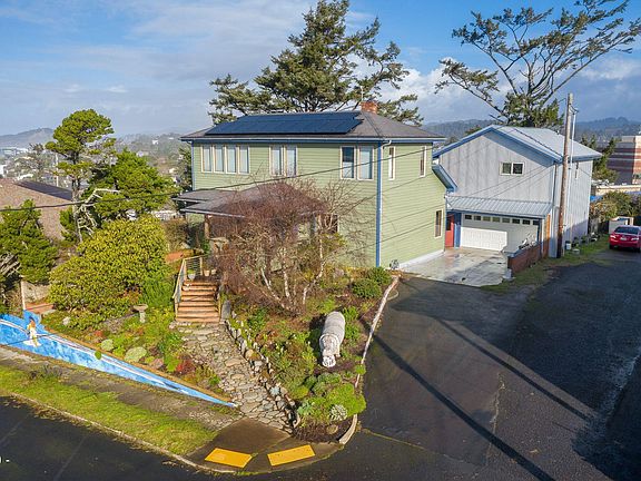 Don't miss this unique OCEAN view home right in the heart of town. Overlooking Nye Beach this 3 bed 2 bath well constructed home boasts amazing PRIVACY and VIEWS from each room. The property features a 1 bed/1 bath APARTMENT above the garage accessed by it's own entrance. The home was completely remodeled and added on to in 2016 and 2018. NEW siding, roof, plumbing, windows, electrical, HVAC, insulation and more. The floors, trim and master ceiling are #1 Grade Southern Yellow Pine, doors are solid core, stair treads and hand rail are Black Walnut, stringers and post are Big Leaf Maple Tree, kitchen counters are Mahogany. All the door knobs are original to the home. The garage has a work space created in the back and energy efficient solar panels are installed. Call to see today!