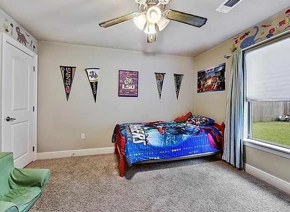 Varuso Home in Madison Farms! Popular 4 bedroom, 3 bath home with 2 car garage. Open floor plan with wood flooring, raised ceiling in master, fans, fireplace, covered patio area, fenced back yard, stainless steel appliances and granite counter tops. The split bedroom floor plan features a separate guest room and bath on the other side of the home providing privacy for guest. Master bath features a garden tub, separate shower, double sinks and walk-in closet. Community pool and convenient access to I-12.