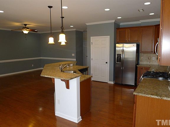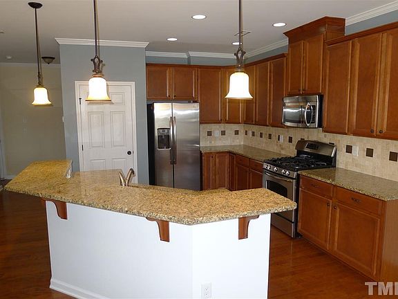 This home has a very warm and welcoming feel to it with an open floor plan. Hardwood floors throughout the main level, oil rubbed brass fixtures, crown moldings, wainscoting in dining/kitchen area, surround sound pre-wire and 9' ceilings on the first floor. The kitchen features 42" maple cabinets, granite, pendant lights, gas stove & SS appliances. Spacious master w/trey ceiling, elegant master bath with tiled shower and separate tub. Enjoy the view of trees from your screen porch. RARE fenced back yard.