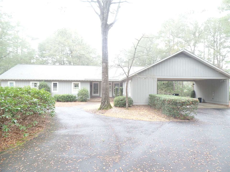 This is a beautiful one story home with many features..The master bathroom has a 'his' & 'hers' bath-complete with dressing are, closet and shower. Carpet in large masterBR. Large LR & DR with hardwood floors. Open sunroom with tile flooring and pecky cypress walls. large office/study/library with sitting area has full bar,built-in bookcases, HW floors. Great kitchen, walk in pantry, double oven, ceramic tile counter tops & lots of cabinets. 10ft ceilings, crown molding and wainscoting throughout home.