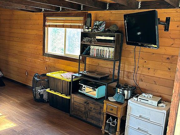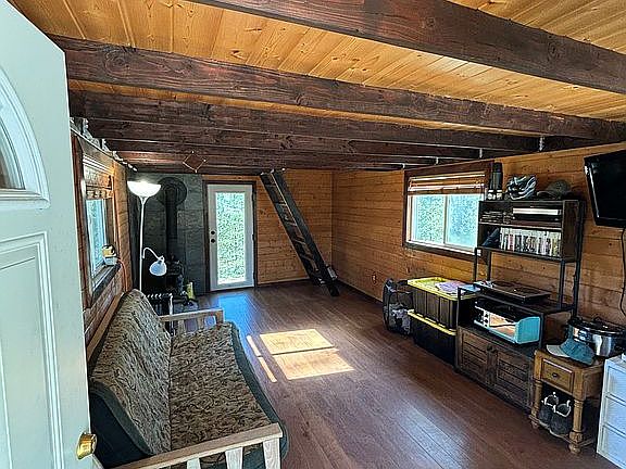Need it moved ASAP so open to offers within reason!! House is immaculate on the inside!! The small cabin is on skids so easy to move!! Similar sheds that are not finished inside are $5-$15k more. 24ft long by 12ft wide finished tiny home/shed with a loft upstairs. Tongue and groove stained pine siding, flooring complete, woodstove and masonry work complete, blinds on downstairs windows. Carpeted in the loft upstairs. Electrical box outside and outlets throughout. Great starter tiny home or add to yor property as a guest Glamping Cabin or maybe just a nice storage shed.