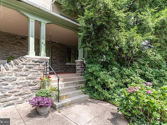 Spring Avenue contains distinctive homes built during the Gilded Age in the early 20th century. 517 Spring Avenue is one of those very special homes! It is pictured in the Old York Road Historical Society book on Cheltenham Township. Solid construction and craftsmanship are evident throughout this 3 -story home. The interior boasts exquisite architectural details throughout its footprint. The impressive wide wrap around covered porch offers outdoor dining and wonderful additional living space in a natural environment of privacy, afforded by the screen of mature evergreen trees. The main entry foyer leads to an open floor plan living area with beautiful oak floors with inlays and wainscoting. The spacious living room is complemented by a den on the other side. Both rooms have fireplaces. The den leads to a modern office space which has a fireplace, built-in twin desks, built-in bookcases and cabinets, a bay window, and large closet. A handsome formal dining room with another fireplace and French doors is great for entertaining! Near the dining room is a classic butler s pantry and a powder room. The modern kitchen has extensive granite counters and granite backsplash, sleek ash wood cabinets, and stainless-steel appliances. The kitchen flows into a large eating area which can easily seat 10 people. Sunshine from oversized Pella windows streams into this eating space offering great views of the garden and majestic trees. Conveniently located first floor laundry room, with outside exit to the rear. Brand new carpet covers the stairs and upstairs hallway. A beautiful turned spindle staircase leads to a large and truly gracious landing with built-in bench seating, fireplace and incredible stained-glass bay windows providing spectacular natural light. The perfect place to sit and read! The second floor contains 4 large bedrooms with high ceilings, elaborate moldings and hardwood maple floors. Beautiful master suite with fireplace, semi-curricular turret windows and built-in bench seating. Master bath with new chrome shower, and big built in wood cabinet. A second full bath with pristine claw foot tub and pedestal sink. An additional sunroom with windows on all 3 sides is well suited for an exercise studio or children s play room. The third floor has its own heating zone - and a door leading from the 2nd floor landing to the 3rd floor staircase - with the ability to simply close the door and save $ on utilities. This level contains additional Bedrooms or Bonus Rooms (office, sewing room), refinished hardwood maple floors, another full bathroom, and fabulous storage space. The lush backyard has beautiful plantings including a great ostrich fern garden, flowering trees and perennial beds of iris and peonies. The grove of mature trees in the back creates a secluded, serene setting. In the front yard is a sour cherry tree whose fruit makes for delicious pies in the early summer! BONUS: Fantastic carriage house over the detached garage!! Multi-purpose use as office, or artist studio, complete with electricity and heat, a small kitchen, full bathroom and a living space. Location provides ideal accessibility: a mere 2 blocks from the SEPTA rail station with a 20-minute commute to center city and 40 minutes to the airport. It s a 5-minute walk to a vibrant book store, frame shop, ice cream parlor, bakery, coffee house, restaurants, and future indoor farmers market. It is also a short walk to the Elkins Park Library with its diverse programming for all ages. 517 Spring Avenue is truly a one of a kind gem!! Schedule your appointment today to visit this very special property.