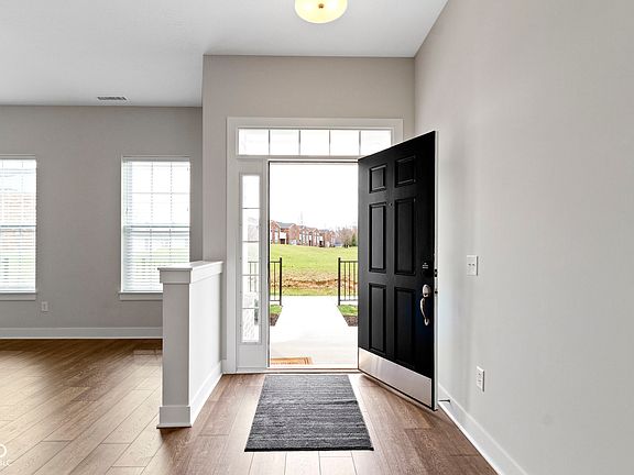 Fabulous & bright end unit townhome by David Weekley, nestled in Carmel's coveted Gramercy West! You're in the heart of it all, close to the Monon Trail, Palladium, Farmers Market, Arts and Design District, downtown Carmel, Midtown, restaurants and shopping! Townhome has many upgrades including carpet, LVP flooring, kitchen cabinets, quartz countertops, gourmet kitchen with center island, tile backlash and stainless steel appliances. You will love the bright and airy feel with the extra windows and 10 foot ceilings on the first floor & 9ft upstairs. Custom blinds in all the bedrooms with ceiling lights. Washer & dryer included, garage entry storage bench with hooks makes coming home easy!