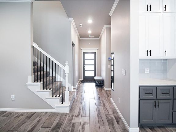 Welcome to this prestigious gated community, where luxury meets comfort. You will love worry-free living where the HOA takes care of full lawn maintenance, a gate, a pool, and a fishing pond. This peaceful community is in the highly sought-after, award-winning PUBLIC SCHOOLS DISTRICT of Edmond. The house greets you with tall ceilings, a cozy fireplace, modern finishes, and lots of natural light. The wood tile flooring makes your cleaning a breeze. The open-floor kitchen features quartz countertops, an abundance of storage, and stainless-steel appliances. This truly 5-bed and 3-bath house is rare to find. The main bedroom is located on the opposite side of the other bedrooms giving you and your family some privacy. The second floor features a nice-sized game/bonus room plus another bedroom and a full bathroom. It could serve as a guest loft or your lovely MIL visiting quarters. The oversized garage includes a tornado shelter, giving you peace of mind on stormy nights, and the outside patio features a wood-burning fireplace. Imagine roasting some marshmallows during cool evenings. You are going to love having the community pool close to your backyard for your convenience. This charming home is ready for its new owners!