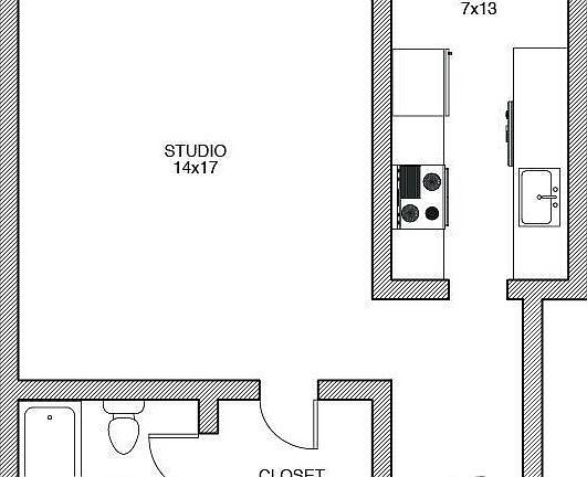 Hanna Properties- Large studio with updated kitchen including gas stove, fridge and dishwasher. 207 Visit hannaproperties.com for more info and rentals credit check, no dogs, no smoking Includes heat hot water and gas
