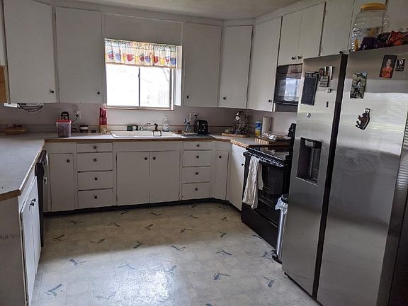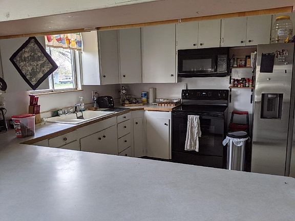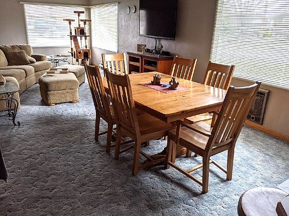 Nice location on the hill in Burns. Open living space plus a family room with fireplace insert and French doors to a covered patio/breezeway. Bedrooms are good sized with new flooring in 2 of them. Oversized laundry area great for storage. French drain was put in on the west side. Lots of extra parking with covered storage and a storage shed. Home is located on a corner lot close to the grade school, hospital, medical offices. Close to the edge of town. Has been financed VA so should be ready for whatever financing suits your needs. Great Value!