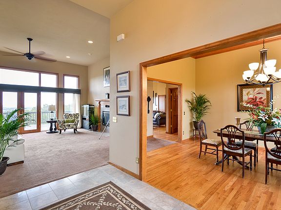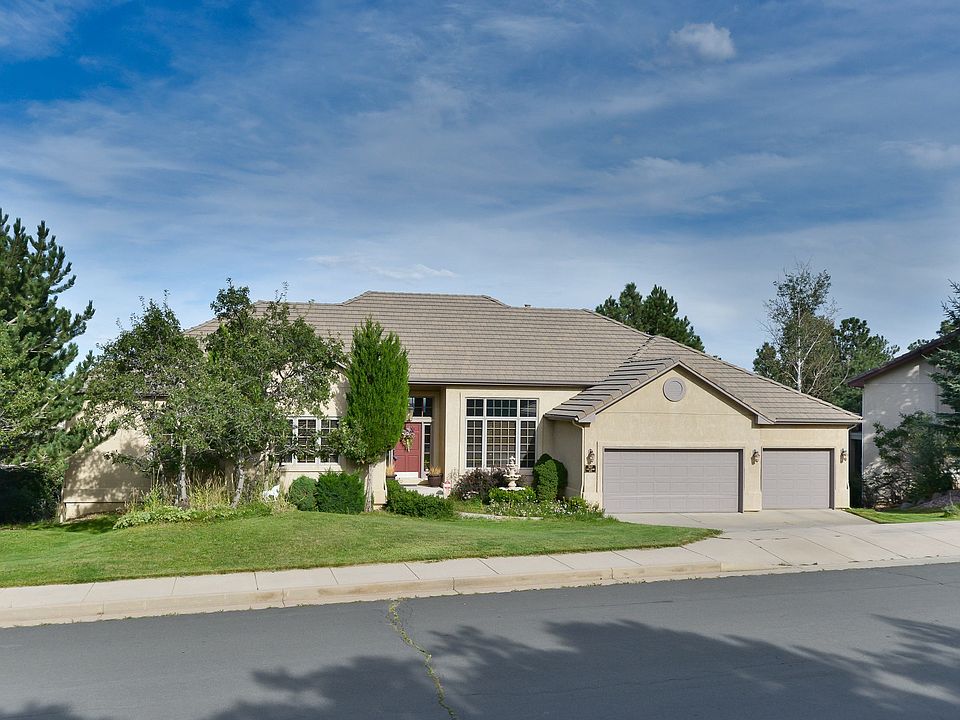 BIG VIEWS and ideal main level living floor plan. Lovely great room with high ceilings and floor to ceiling windows showcasing the beautiful city lights. Intimate formal dining room, kitchen with granite countertops opens to the family room with double sided fireplace. Great gathering place with a casual eat in dining area, hardwood floors and a walk out to the back deck from this area or the great room. Master suite and 3 bedrooms on main. Currently one bedroom on the main is set up as an office. Very nice size bedrooms with baths adjoining and high ceilings. Nice hardwood staircase leads you to the amazing lower level walk out that was remodeled and is quite impressive. Slate flooring and Hemlock timbers around the fireplace, built in bookcases and reading nook, family room/game room and 3 nice size bedrooms with 9ft ceilings. Walk out with lots of light. Great lot with flat space for the kids. Current owner has let it become a natural native space, but it does have a sprinkler system, so if you prefer a more manicured look you can recreate it. Quiet, private dead end street. No need to drive all the way up the hill for the VIEWS, some of the best in the neighborhood. Great community with neighbors who look out for each other. Buyer to verify square footage as old MLS shows 5396 total square feet, El Paso County shows 5400 total square feet.
