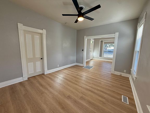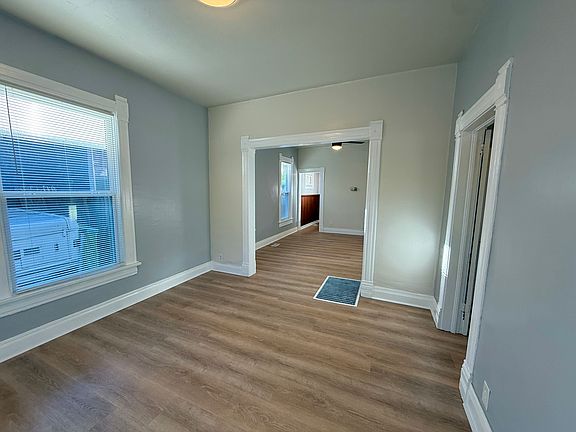LOVELY VICTORIAN WITH UPDATED MODERN FLAIR Front and middle living space with large window seat. Bath with clawfoot tub / shower including a double vanity. Kitchen has attached Pantry with stackable washer/dryer. Freshly painted. New LVP flooring, new energy efficient windows, new lighted ceiling fans. Original baseboards and trim. Large yard with tall privacy fence. Porch off back door of kitchen. Detached 1.5 garage / shop with extra alley parking. Utilities paid by tenant. Very close to downtown! Applications available during showing