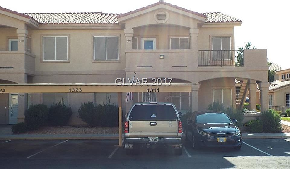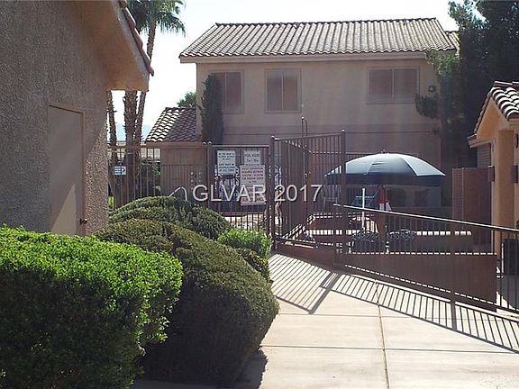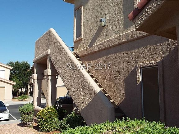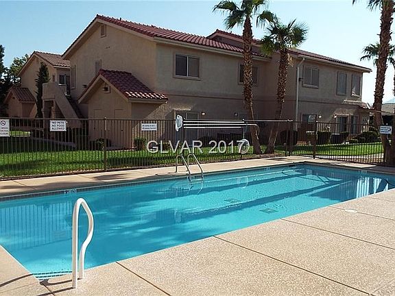 FURNISHED! Beautifully maintained condo boasts vaulted ceilings that make the condo feel spacious and inviting. Upgraded Stain Masters Luxury Vinyl Flooring that looks like porcelain tile in the kitchen & bathrooms along with new paint in the main living areas. Enjoy the weather on your private & spacious covered patio with views of the Virgin Mountains. Solar screens on windows. This upstairs condo is conveniently located near the community pool and mailboxes as well as having an assigned covered parking spot in front of the unit. Centrally located Gated Community.