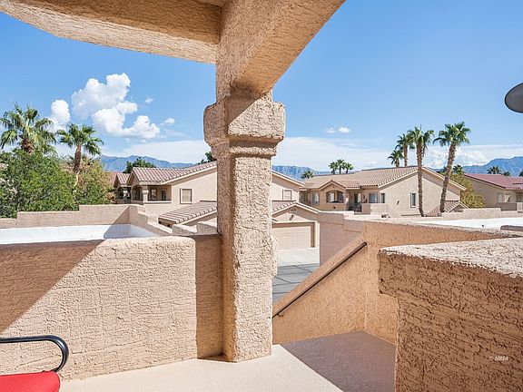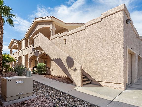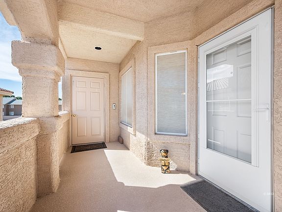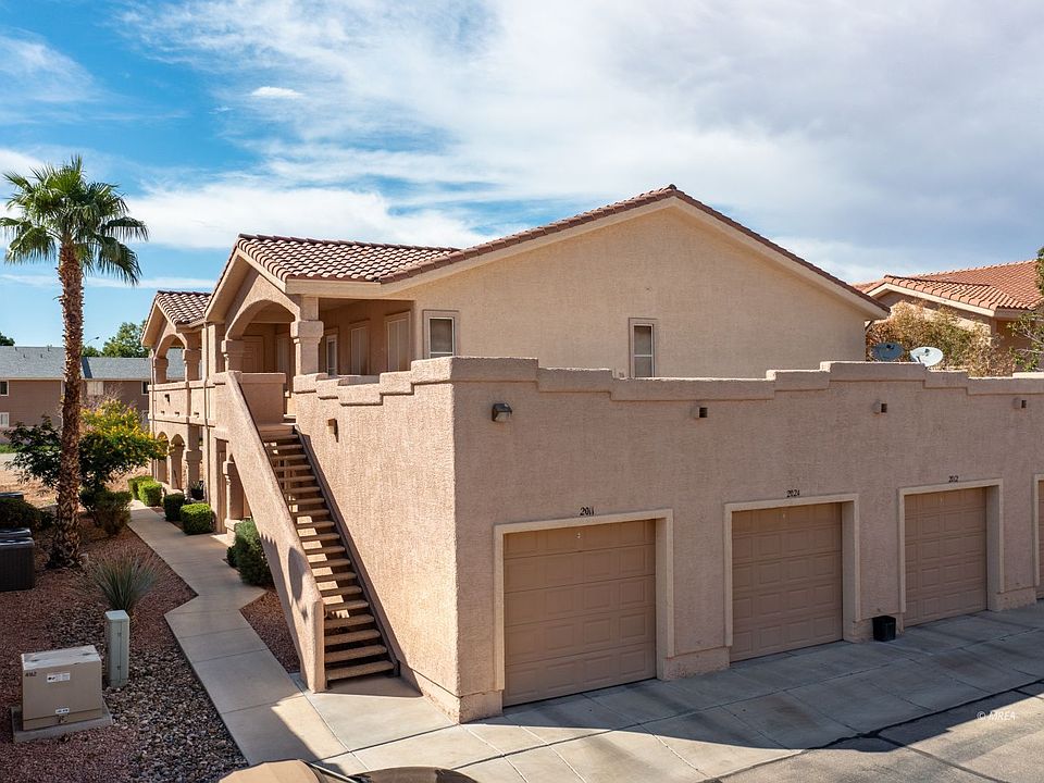Don't miss out on 517 W Mesquite Blvd #2024!! This upstairs unit is clean, upgraded, and ready to go. The 1,334 SF of living space offers two well sized bedrooms as well as 2 bathrooms, and an open concept design great room that connects the living room, kitchen, and dining area. The carpet is about 4 years old but looks brand new, and the countertops have all been upgraded to Corian counters. Ceiling fans in each bedroom and in the living room, and window coverings throughout! The one car garage is just steps away from the stairs to this unit and offers overhead storage area. The large covered patio offers Eastern and Southern Views and even catches some views of the Virgin mountains. HOA is currently $264/month and includes access to the pool and hot tub area that is just across the parking lot from the condo.