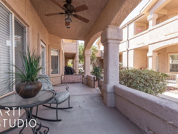 Location!! Beautiful luxury Condo with private elevator located in the gated community of Sandstone. This Condo has over 2700 sq feet of living space not including a 576 sq ft garage, with 8 ft doors. Tucked in the back of the community it has quiet covered decks with a distant view of Falcon Ridge Golf Courser. Two Master Bedrooms with Master Baths a Garden Tub and Walk in Showers. 3 Large walk In Closets. Large Laundry Room with Cabinets. Great office space with a private outside entry and storage. Gorgeous living space downstairs with modern kitchen and stainless appliances. Walk in pantry and plenty of cabinets. Large Great room / Media Room upstairs with room for billiards and bar perfect for entertaining. Painted in Grey tones it is very easy to decorate to your perfection. This Condo is walking distance to many of Mesquites banks, post office and casinos. Sandstone offers a very nice Hot Tub, Pool and Clubhouse. This unit contains an working private Elevator. Too many extras to describe.
