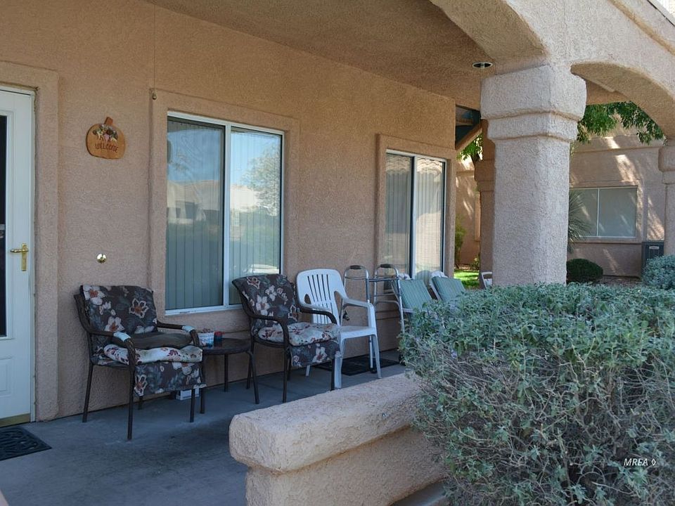 This 1040 sq. ft. downstairs Sandstone condo is a must see. The property features a covered front patio to enjoy spring and summer mornings and evenings with a beautiful view of the surrounding mountains. The property has upgraded light fixtures with ceiling fans in the living, master bedroom and the second bedroom. Property has a storage closet and the best feature, parking directly in front of the unit! Also it's a gated community. Easy access to all amenities. Don't miss this opportunity to enjoy the Mesquite lifestyle!