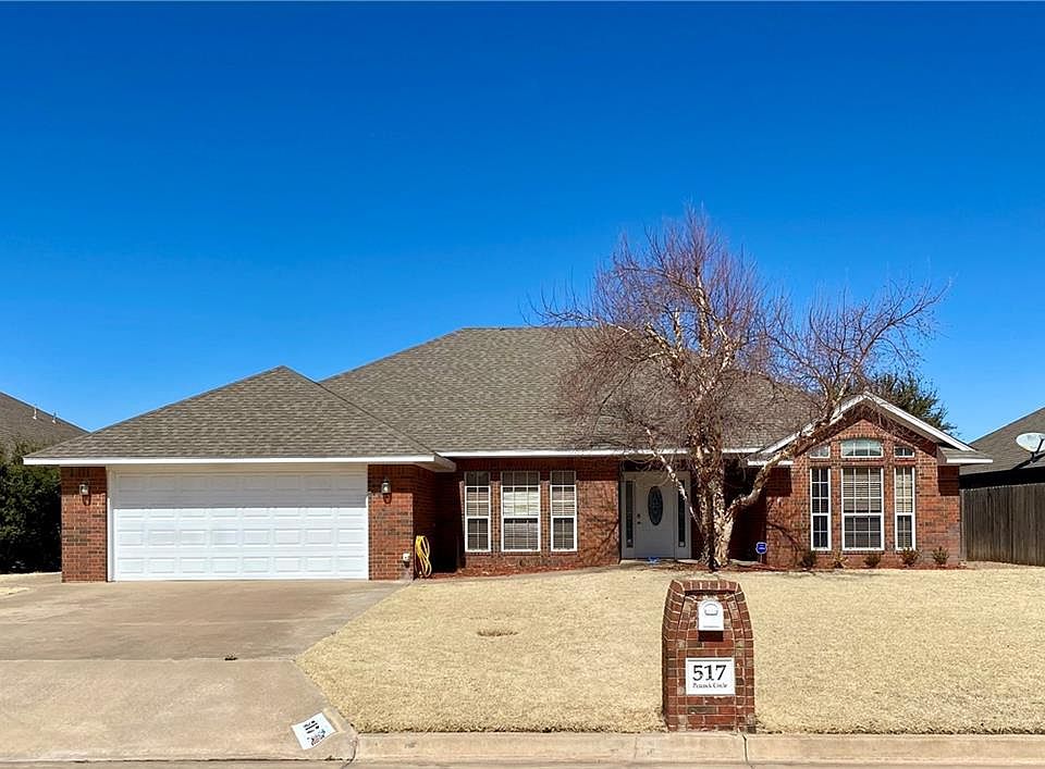 Beautiful 3 bedroom home, located in a quiet neighborhood. This home features an attached 2 car garage with a floor level storm shelter inside. The Kitchen features touch-less faucet, dish washer, owners installed gas stove, and stainless steel refrigerator, pantry's, lots of cabinet space and open bar that's right off of the kitchen that leads into the breakfast nook. Large open living area that features a beautiful gas fireplace with mantle. Primary bedroom with on suite features a newly tiled shower with his and hers closets and sinks. Front room area can serve multiple purposes, study, dining room. 2nd and 3rd bedrooms have walk in closets with a full sized bathroom in-between rooms with his and her sinks. Backyard features a covered patio with lots of space as well as privacy fence. Sprinkler system intact, garage keypad entry, newly tiled floors throughout the house, bedrooms are carpet. Seller to remain on property until May 7th.