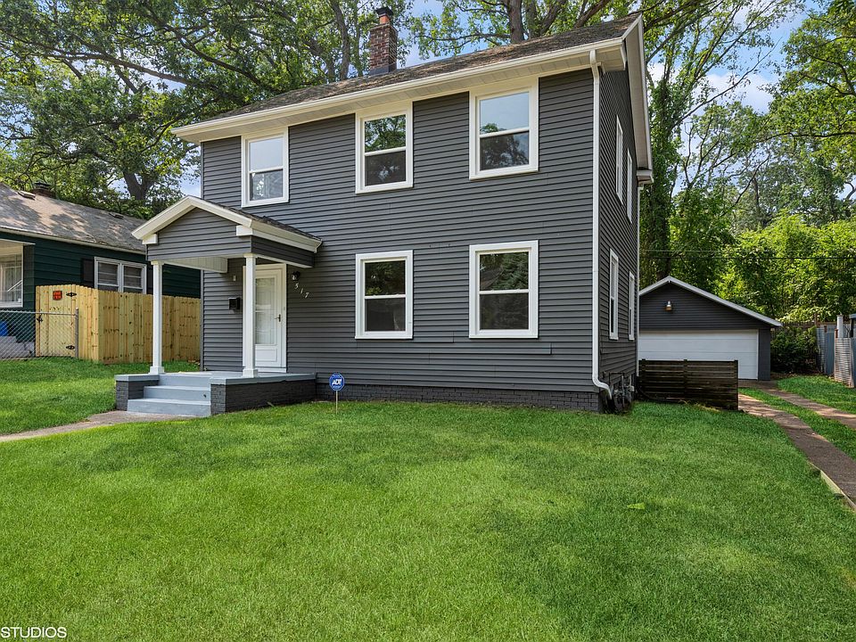 Discover your dream home with this move-in ready gem, a perfect blend of modern upgrades with timeless charm. Step inside to find the beautiful and refinished original hardwood flooring throughout with 2 cedar closets. The updated kitchen boast quartz countertops, tile flooring, SS appliances and new soft-close wood cabinets. The main level offers a spacious living/dining area. The upstairs bath has a double vanity and exquisite tile finishes, adding a touch of luxury to your daily routine. The basement is clean and provides ample storage and a utility sink hookup for laundry. The 2+ car garage has room for 2 vehicles and a dedicated work area. Outside the partially fenced backyard features a deck and cement patio - great for gatherings with plenty of room for gardening. Conveniently located near the marinas, parks, the beach, Blue Chip Casino and the South Shore Line.