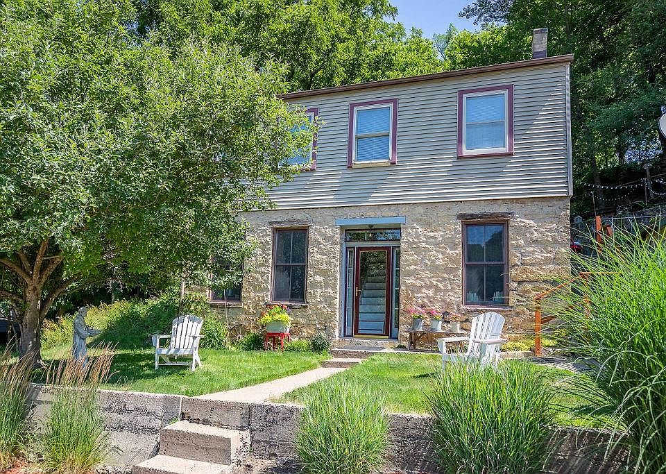 Charming Stone Cottage located close to Galena's Historic Main St. Spacious 2 bedroom home sits against a limestone backdrop. Main level features exposed interior limestone walls in kitchen and deep window sills and dining area and powder room. Upper level features living room with gas stove fireplace, 2 bedrooms and full bath. Living room leads to back of house with patio area and a Stone terraced wooded site.