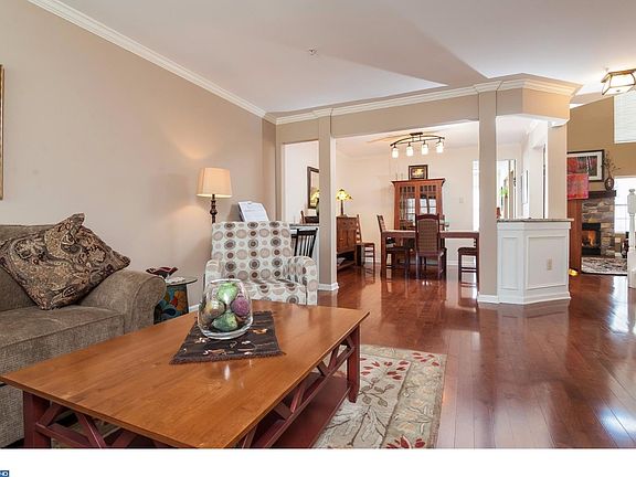 This Wilshire Hunt townhome has a welcoming front patio, stunning interior, and 1-car garage with elevated storage. Entry area has double closet. Cherry floors, crown molding, picture molding wainscoting make this interior truly grand. Living room and dining room are adjoined with an open granite top shelved half wall. Eat-in kitchen with skylights has SS Kitchen Aid dishwasher, a GE profile gas range, French door refrigerator, pantry closet, recessed lighting, granite countertop, and decorative accents in backsplash. Family room has soaring 17' ceiling w/fan, a dramatic stone, gas fireplace, Palladium windows and rear door to fenced patio with retractable awning. Powder room, door to garage and mechanical closet complete the first floor. The carpeted upstairs is designed for privacy and features a master bedroom suite with tray ceiling, a separate sitting room, two closets, one a walk-in, tiled bathroom w/jetted tub, separate shower and double sinks. There is a hall washer/dryer closet, another tiled, full bath w/tub-shower and linen closet. The 2nd bedroom has a ceiling fan, two closets and double window. All this within close proximity to 202 Corridor, Princeton, and Trenton make this location a commuter's dream. The finest restaurants, shops and recreation in New Hope and Lahaska are minutes away. Wilshire Hunt is a wonderful community and the surrounding area offers abundant creative and energetic options and pursuits. Tenant responsible for all utilities and renter's insurance. Landlord responsible for association fees. Background report run through the National Tenant Network.