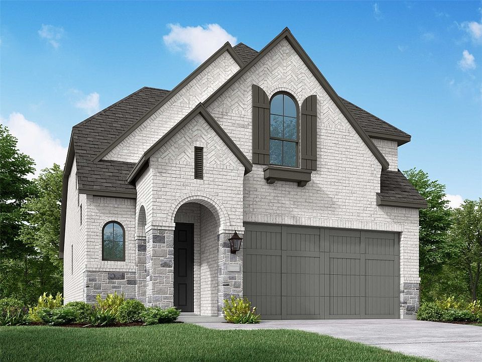 MLS# 20546006 - Built by Highland Homes - Ready Now! ~ The Lyndhurst plan on an over-sized large lot. 20ft soaring ceilings in family room, built-in hutch, gas cooktop, quartz counter tops, free standing tub with glass shower in primary bath, luxury vinyl flooring in common areas, iron railing, gas start brick fireplace, window blinds, upgraded carpet and pad, full gutter, sprinkler and tankless water heater!!!