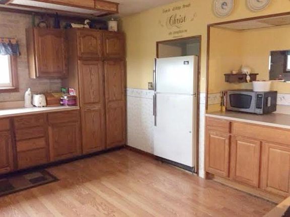Enjoy country living? This is it! The kitchen has Merilite cabinets, lots of counter space and lots of additional storage available. 200 amp services updated in 2005. 24' x 40' detached garage with benches, cabinets, vinyl siding and windows. New water pump for well in 2014. Living room is 17' x 11'. Dining room is 15' x 15'. Kitchen is 15' x 13'. Family room is 18' x 12'. Half bath 5' x 5' and master bath is 5' x 10'6'". Bedrooms are: 11'6" x 21'6" - 11'6" x 12'6" - 8' x 12' - 13' x 12'. Laundry/utility room is 13' x 12'. Stove, dishwasher and water softener included. Check this one out today!