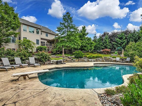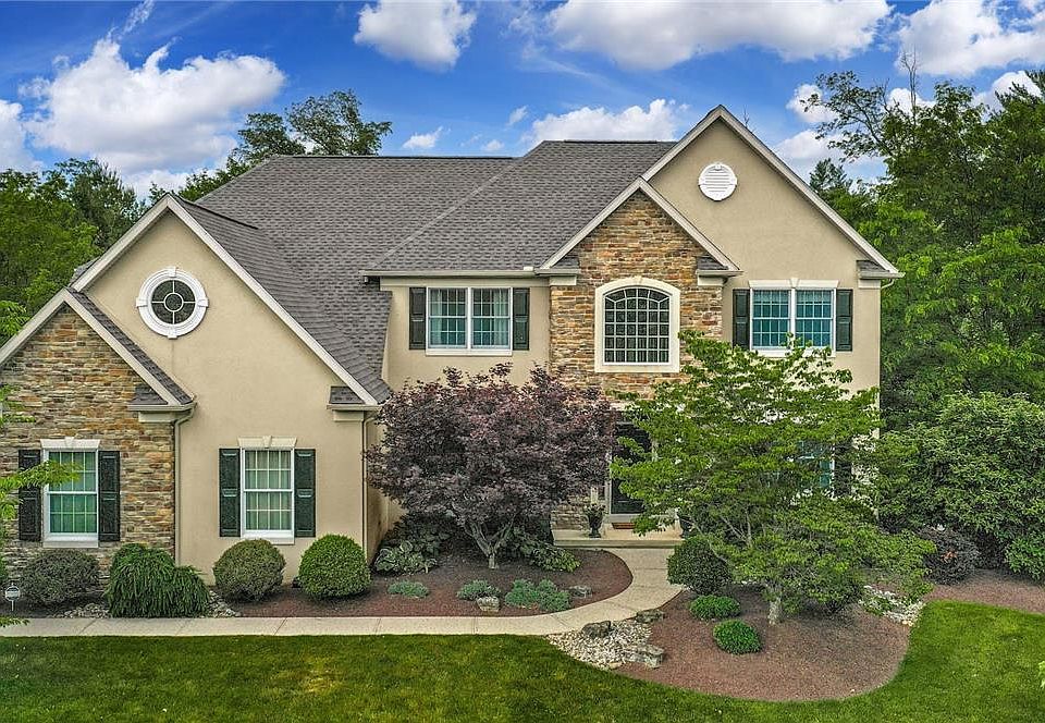 Offering a host of details distinguishing it from the ordinary, this stunning home, in the fabulous community of VALLEY GREEN, will melt your heart & welcome your family. Relax on the Azek deck, overlooking the SALTWATER POOL & HOT TUB. Perfectly positioned for outdoor entertaining, the COVERED DECK will become your favorite “go to” at the end of the day. Detailed appointments are commonplace throughout, boasting 9 ft 1st floor ceiling heights & foyer with 2-sided balcony. The 1st floor boasts an OPEN FLOORPLAN with a cherry kitchen leading to the 2 STORY FAMILY ROOM with WALLS OF GLASS & adjacent sitting rm with FIREPLACE. A dining room with tray ceiling and an office with French doors complete the 1st floor. The 2nd floor has 4 BRs & 2 baths, including the primary suite with sitting room, walk-in closet & bath. The WALK OUT LOWER LEVEL has a rec rm, game rm & full bath, with access to SALTWATER POOL, PATIO & HOT TUB. The FENCED BACK YARD is the perfect place for kids & pets to play.