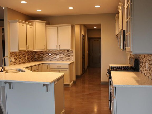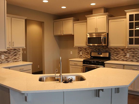 New walkout basement offering high end finishes such as crown molding, window trim, Schrock cabinetry with soft close drawers, quartz countertops, gas stove and designer colors. 2 or 3 living areas, bay eating area in kitchen, formal dining area, office, full kitchen in the basement, master suite with his and her closets tiled shower and jetted tub. Inground sprinklers with a partially covered deck on a beautiful lot that backs to common area. John Deere room. Sub. includes pool and tennis etc.