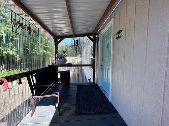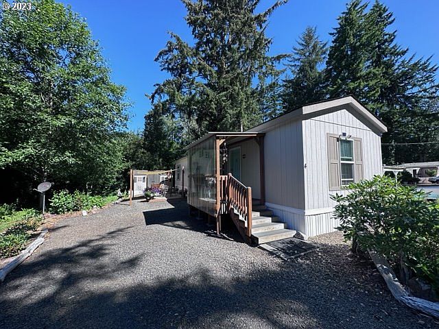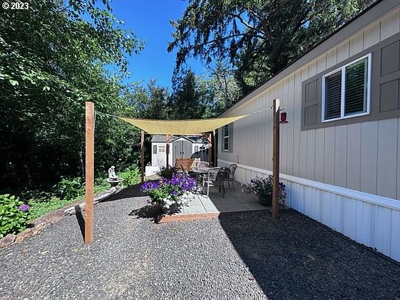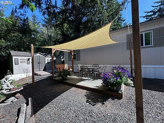 Absolutely adorable home in the Big Spruce Mobile Home Park south of Florence and protected from the wind. This home is first in the park with beautiful park like landscaping welcoming you in. This home has twice the parking than most and a delightful front paver patio perfect for relaxing and a weather protected front porch for entering into the home out of the elements. The inside of the home is just delightful with many upgrades and additions and improvements to this 2014 home. Guest room in front and primary in the back. This home is light and bright with plank luxury vinyl flooring throughout and updated lighting. The living room is open to the kitchen and dining areas giving it a welcoming feel. You'll love the spacious kitchen with cooks island, stainless appliances and white cabinetry. Even the inside laundry area is adorable. There is an added ship lap sided mud room which welcomes you down to the fenced in back patio where you can enjoy bbqing and relaxing in the sun. This home has been meticulously cared for and loved and you do not want to miss your opportunity to make this one for your own. Located just five minutes south of Florence and near all the dunes, ocean, river and lakes. Come take a look, schedule your personal viewing today!