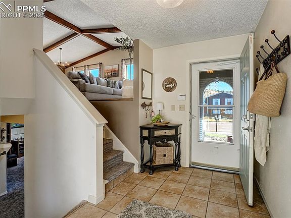 Welcome to this stunning 4-bed, 3-bath home nestled in the highly coveted Pinon Valley neighborhood. Located just moments from Ute Valley Park, Mountain Shadows Open Space & Garden of the Gods, this home combines modern comfort, prime location & NO HOA fees! As you step inside, you'll be greeted by beautiful painted stair treads paired w/a lovely carpet runner. This inviting feature leads you to the Main Level (ML), where soaring vaulted ceilings, wood beams, all-new baseboards & LVP flooring create a warm & sophisticated ambiance. The open-concept design flows seamlessly throughout the living areas, perfect for contemporary living. The gourmet kitchen is a chef’s dream, boasting pretty tile countertops, all-new appliances—including a dishwasher, microwave, gas stovetop, and oven w/a classic tile backsplash. Adjacent to the kitchen, the dining space integrates effortlessly with the ML area, making it ideal for entertaining. The ML also hosts the serene primary suite, complete with a walk-in closet & private ¾ bath with tile surround shower. A 2nd bedroom & full size bath adds additional flexibility for guests. On the lower level, you’ll discover even more living space. A cozy family room features a striking brick wall accentuating the pellet-burning fireplace. Two additional bedrooms, a ¾ bathroom, and brand-new carpeting throughout this level make it a welcoming retreat. This floor also includes a versatile flex space & convenient laundry room where you'll also find a brand-new AC system & Furnace for year-round comfort! Step outside to the backyard, where a covered concrete patio provides the perfect spot for outdoor furniture & entertaining. The expansive backyard offers endless potential to design & customize your ideal outdoor living space, complete with a storage shed & RV parking spot located on the side of the home. With its thoughtful design, abundant amenities, this home is ready to welcome you. Schedule your tour today & experience all it has to offer!