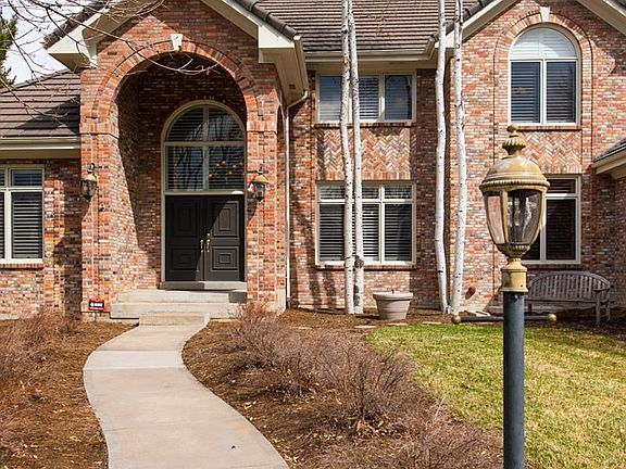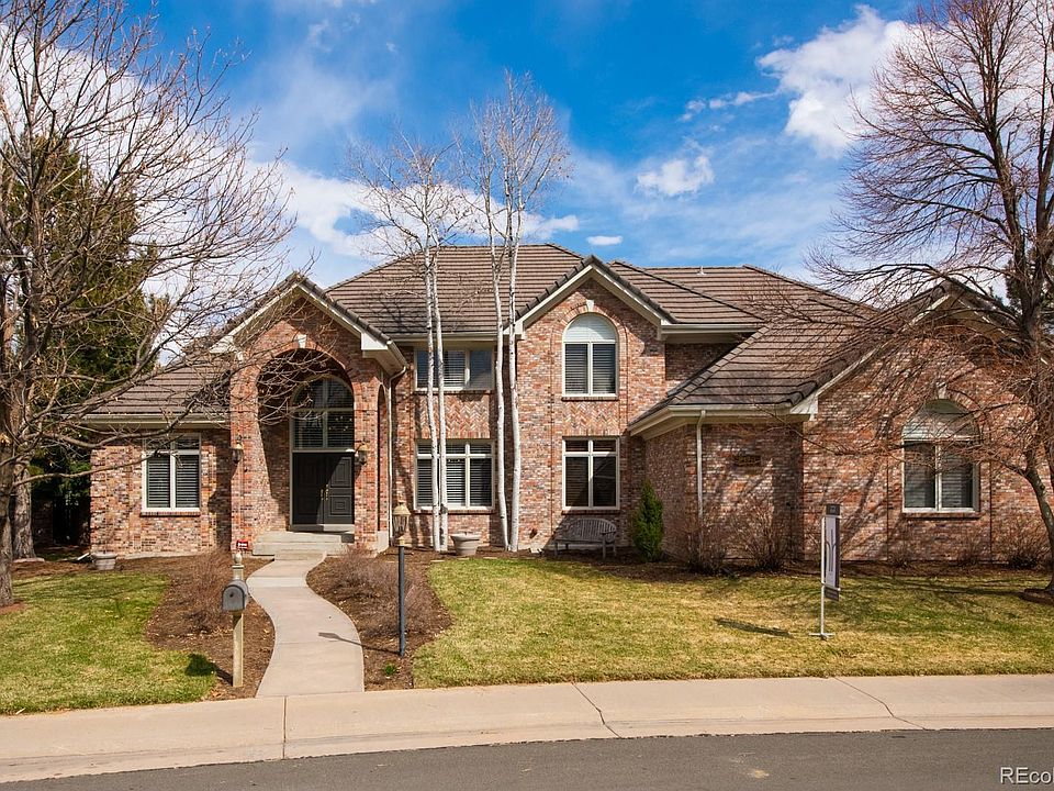 Timeless elegance exudes from this exceptional home in the private enclave of Lakeview at the Hills. Heartbeats away from Cherry Creek State Park, residents have access to nearby trails, parks and retail centers and are minutes from Cherry Creek High School. An uninterrupted brick exterior welcomes you into a home designed for relaxation and entertainment. Design elements like wainscoting, coffered ceilings, custom built-in cabinets and bookshelves run throughout this architecturally exciting home. A breathtaking two-story entryway welcomes you into the home. A sweeping grand staircase and intricate chandelier set the standard of elevated grandeur carried throughout the interiors. Bold, white columns divide the space, bordering the entryways to the salon on the left and the sophisticated dining room on the right. Invite in a few friends for conversations in the front seating area or enjoy dinner in the exquisite dining room. Deeper into the home, a stately living room features a dramatic coffered ceiling that draws the eyes toward the fireplace and mantel. The floor plan flows with ease to the sunny dining nook -- highlighted by a multi-tiered recessed ceiling -- and into the kitchen. Representing a true chef's kitchen, the functional layout boasts elegant glass cabinets, stainless steel appliances, a gas range and a double oven. Upstairs, double doors dramatically open to a luxurious master suite. A recessed ceiling adds volume to the already spacious suite, while bountiful natural light spills in from generous tall windows surrounding the elevated seating area. An en-suite master bathroom takes luxury to a new level, complete with a spa tub, walk-in double shower, skylight and a large walk-in closet. Virtual Tour Available.