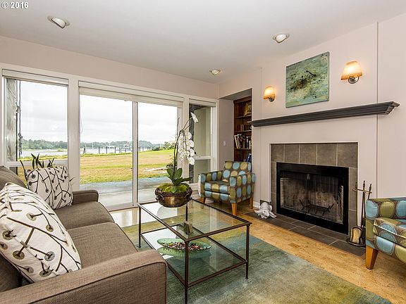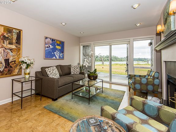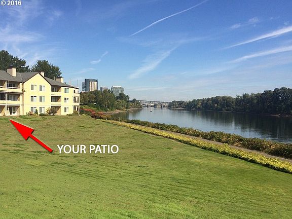 Pristine main level unit w/sweeping views of the Willamette. Rare opportunity with large patio space overlooking the river & spills out onto grassy lawn--perfect access for pets. Remodeled KIT w/newer appliances opens to DIN & LIV spaces. Cork floors thru-out main living spaces, updated bathrooms, laundry hookups in unit & lots of storage, & 2 dedicated parking spaces. Stroll to farmers market, cafe's, eats & shops.